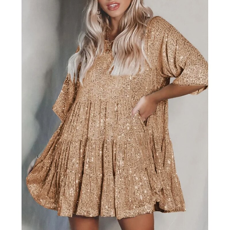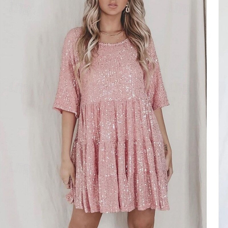 Highlights - Perfect for the spring and summer seasons - Made of high-quality polyester fabric - Features short sleeves for a flattering look - Designed specifically for women - Ideal for cocktail parties and special occasions - Stunning sequin and shimmer design - Classy crew neck neckline - Chic mini dress length for a trendy look