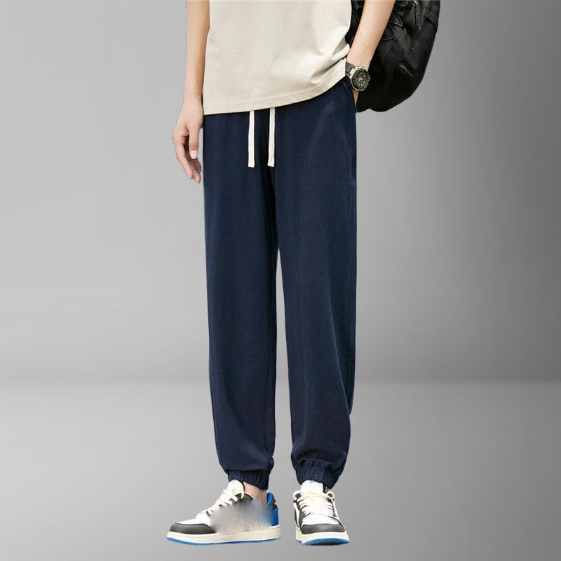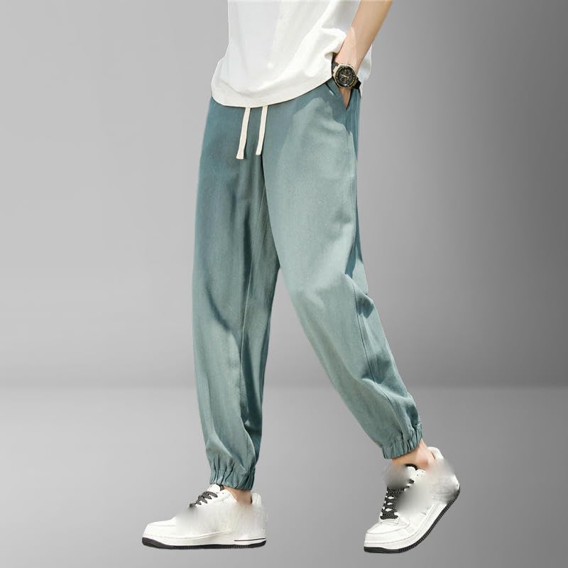 Men's Summer Thin Solid Loose Trendy Nine-Tenths Linen Jogger Casual Pants 1