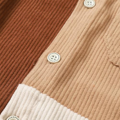 Toddler Boys Button Down Shirt Baby Long Sleeve Corduroy Color Block Kids Outfit Fall Winter Clothes 6
