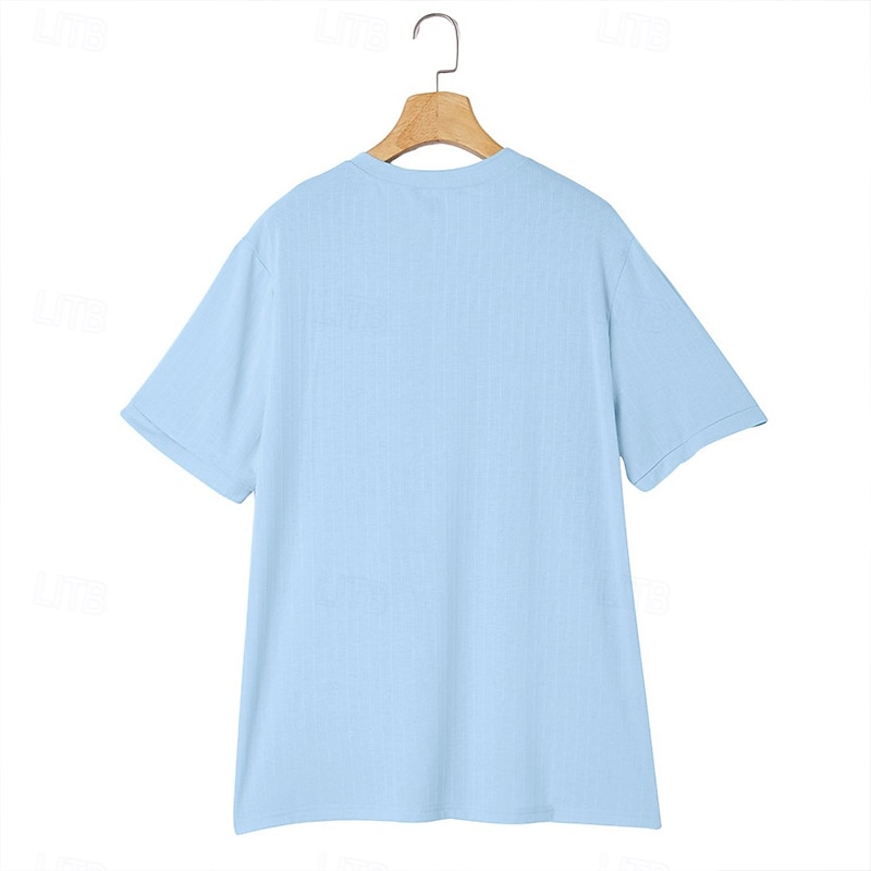 More information about Men's Henley Shirt Short Sleeve Shirt Ribbed Knit tee Tee Top Short Sleeve Solid Color Daily Hawaiian Buttons Henley Outdoor Street Causal Summer Light Blue White Brown Henley T-Shirt
