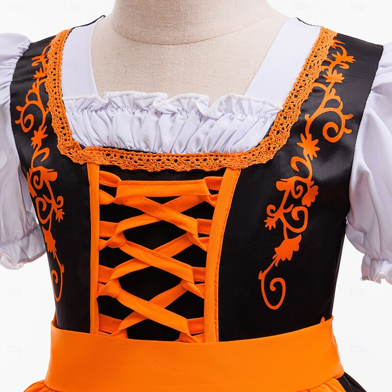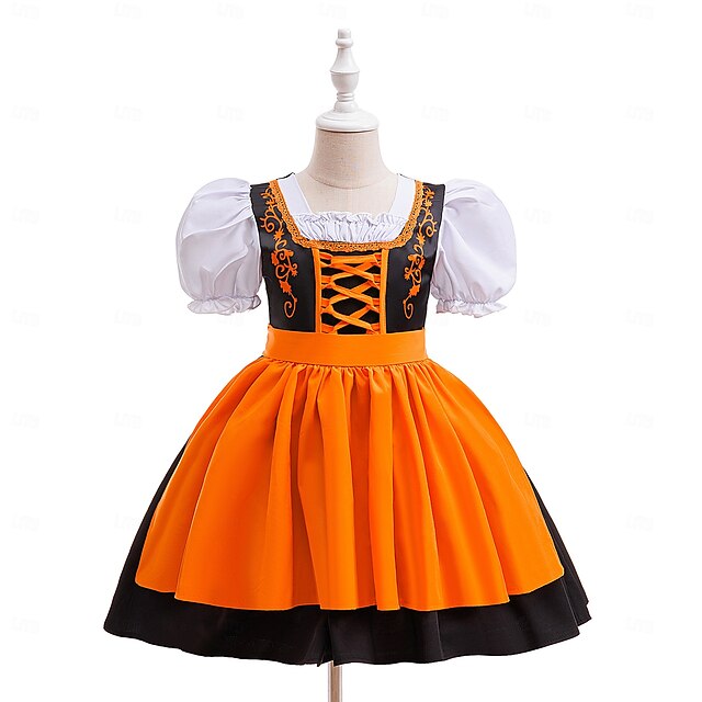 More information about Kids Girls' Party Dress Color Block Short Sleeve Special Occasion Halloween Party Halloween Custome Sweet Polyester Summer Spring Fall 6-12 Y Orange