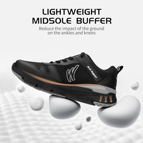 • ERGONOMIC ARCH SUPPORT: Plantar fasciitis shoes women have feature removable arch support insoles with 3-point support technology to evenly distribute pressure, alleviate foot fatigue, and enhance comfort during prolonged standing or walking
