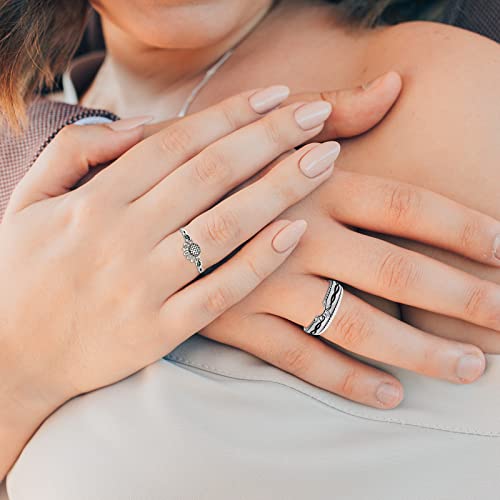 Promise Ring for Couples Wedding Engagement Band Emerald Sunflower Matching Rings Him and Her Sterling Silver Adjustable Couple Jewelry 7