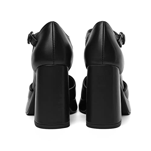 Joseywade Platform Mary Janes Women Chunky Block Heel Pumps Closed Round Toe 4 Inch Ankle Strap High Heel Shoes 6