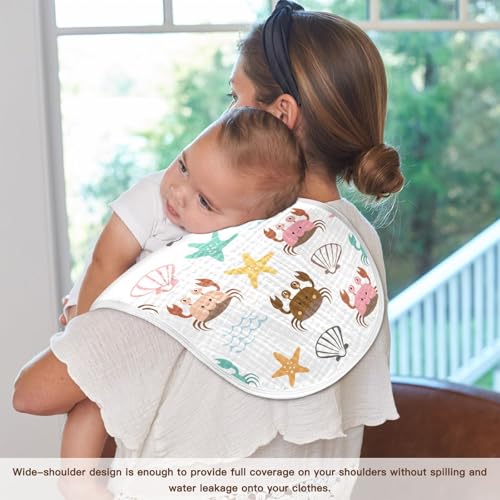 Cute Cartoon Crabs Baby Burp Cloths for Boys and Girls, Soft Muslin Spit Up Towels, 22"x11" Newborn Essentials for Feeding and Drooling, 4 Pack 5