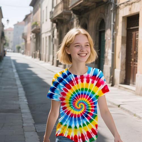 Kids Tie Dye Shirt Children Size 4-10 Years Boys' Girls' Hippies Senior Tie Dye T-Shirt 5