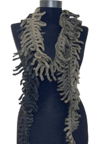 • Long acrylic wool crocheted anthracite brown necklace lariat