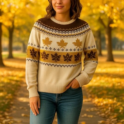 More information about Women's Fall Maple Leaf Knit Sweater Autumn Crewneck Pullover Jumper Thanksgiving Outfit Pumpkin Patch Sweater Gift