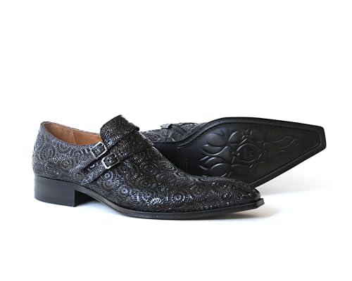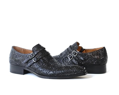 More information about Jo Ghost 4952 Italian Black Laser Print Leather Shoes with Buckles and Zip