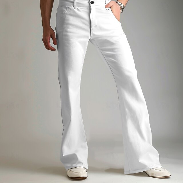 Men's Dress Pants Flared Pants Trousers Suit Pants Pocket Plain Comfort Breathable Full Length Outdoor Daily Going out Fashion Casual White Khaki Stretchy 12