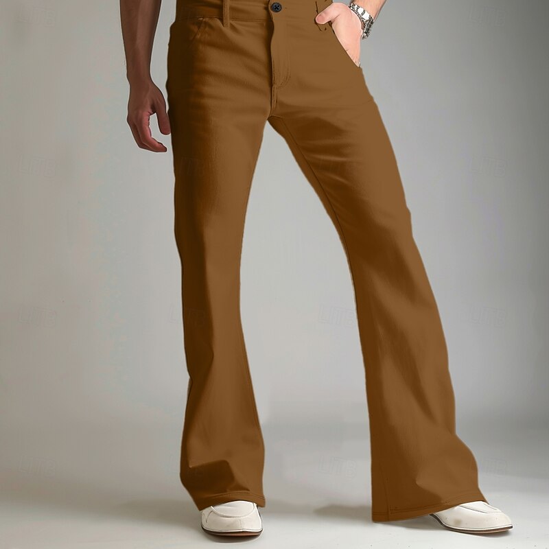 Men's Dress Pants Flared Pants Trousers Suit Pants Pocket Plain Comfort Breathable Full Length Outdoor Daily Going out Fashion Casual White Khaki Stretchy 8