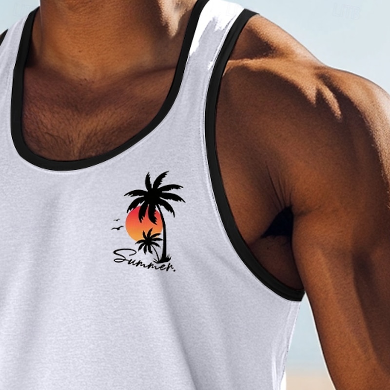 More information about Men's Tank Top Vest Top Sleeveless Shirt Muscle Shirt Sleeveless Crew Neck Summer Coconut Tree Sports Fashion Comfortable Print Casual Beach Black White Green Top Tee for Men