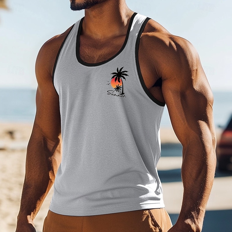 Men's Tank Top Vest Top Sleeveless Shirt Muscle Shirt Sleeveless Crew Neck Summer Coconut Tree Sports Fashion Comfortable Print Casual Beach Black White Green Top Tee for Men 11