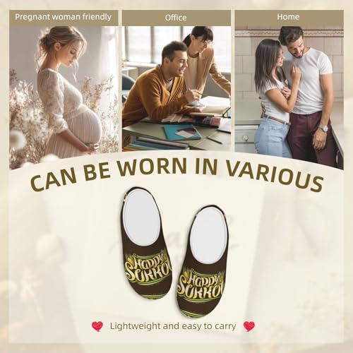 Happy Sukkot Jewish Holiday Adult Cotton Slippers Home House Indoor Shoes 6