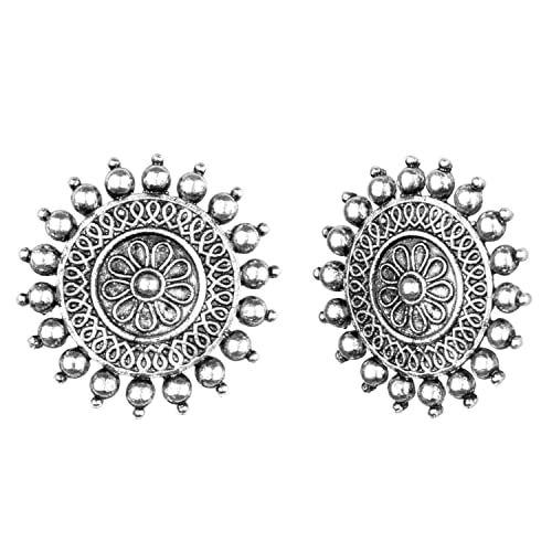 Efulgenz Indian Earrings for Women Boho Oxidized Earring Round Big Stud Oxidized Earrings Jewelry for Women 1