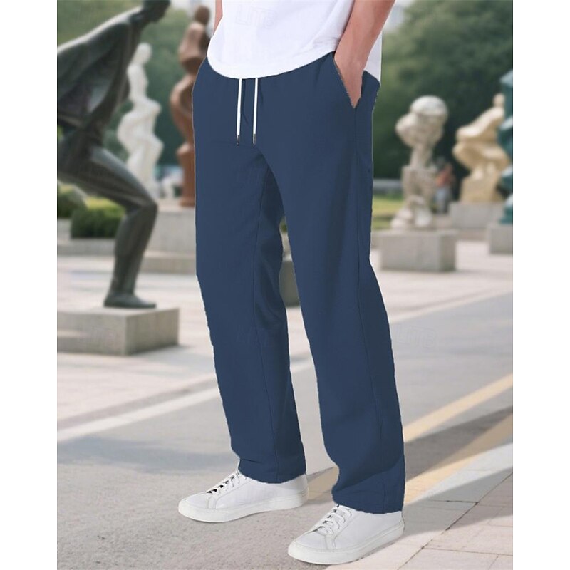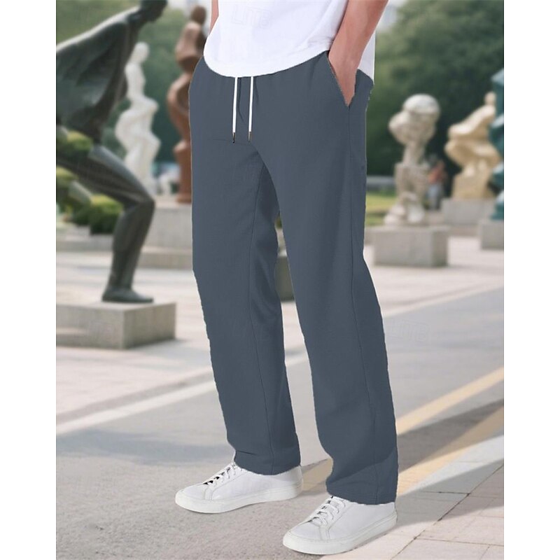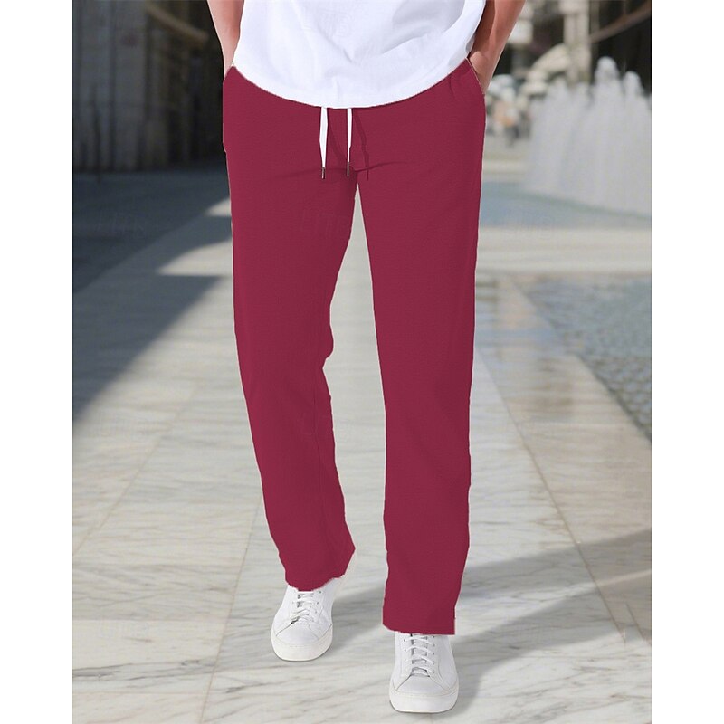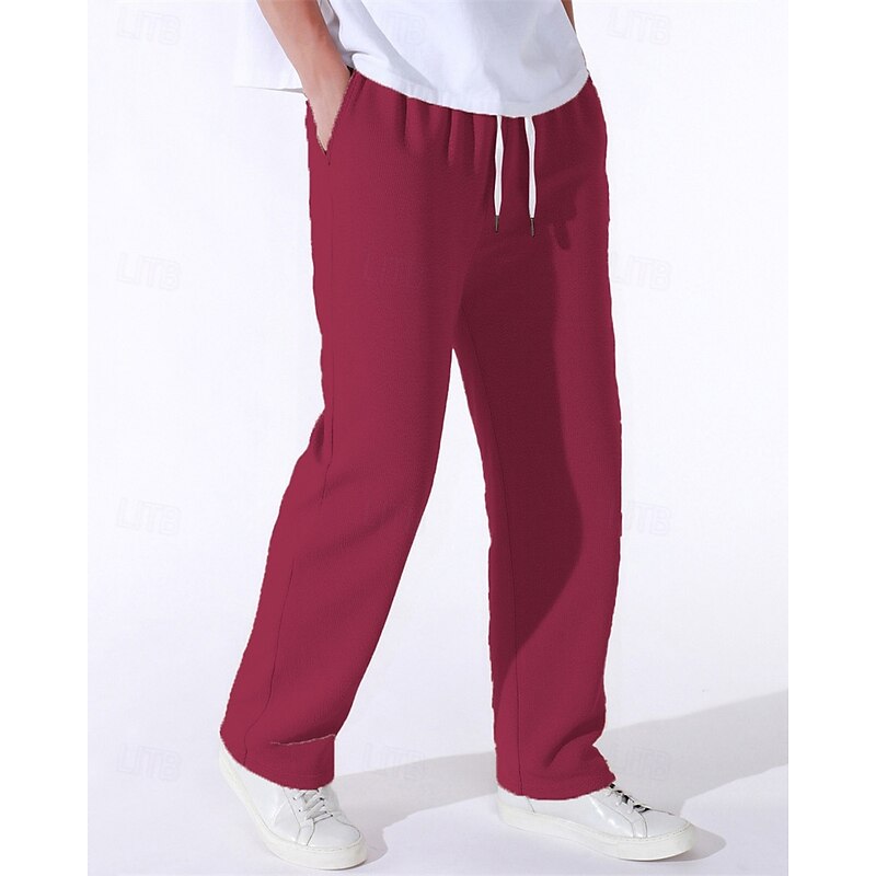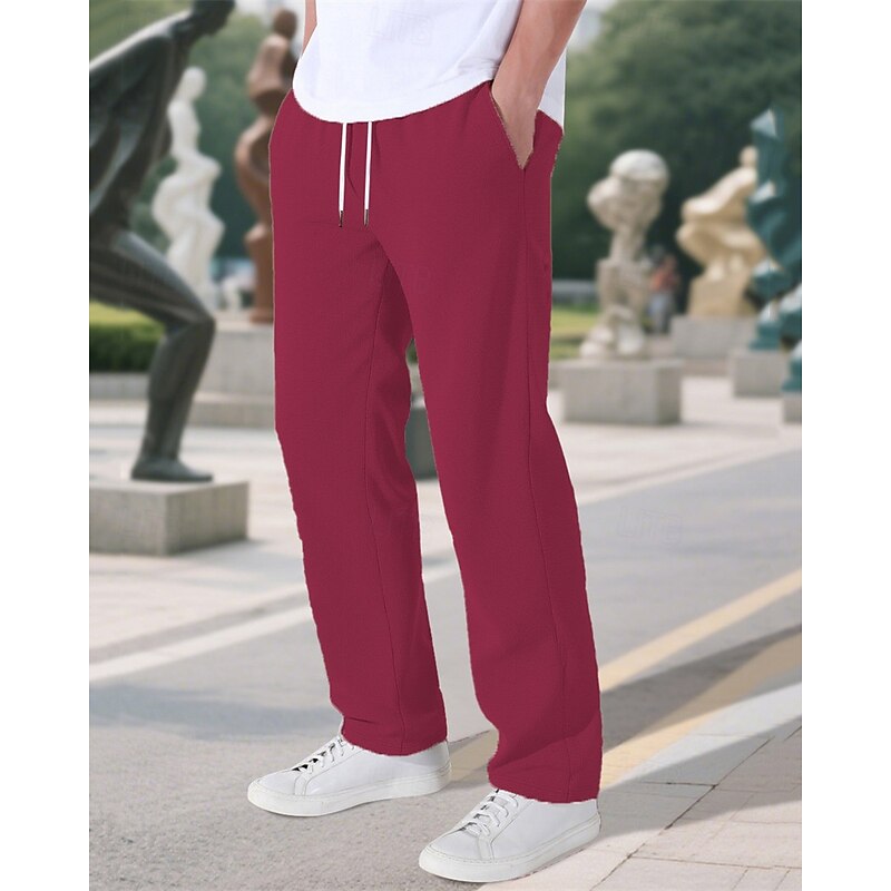 More information about Men's Sweatpants Trousers Straight Leg Sweatpants Drawstring Pocket Elastic Waist Plain Comfort Sports Outdoor Daily Fashion Casual Black Wine Micro-elastic