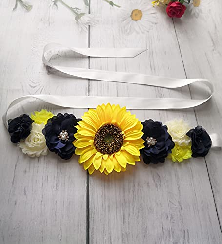 HOT ! Sunflower Babyshower Sash for Gender Reveal Maternity Sash Belts Flower Pregnancy Belly Sash Belts Boy or Girl
