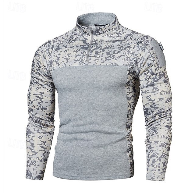 More information about Men's Sweatshirt Quarter Zip Sweatshirt Tactical Hoodie Camo Hoodie Black Army Green Light Grey Hooded Camouflage Patchwork Zipper Sports & Outdoor Casual Daily Streetwear Cool Sportswear Spring