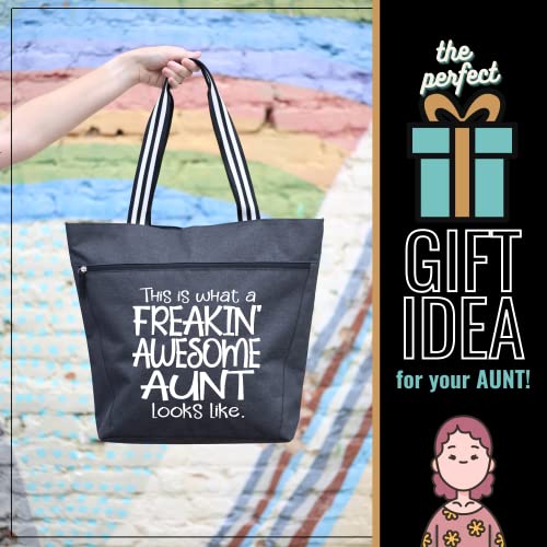 Brooke & Jess Designs Aunt Gifts - Canvas Tote Bag with Pockets from Niece, Nephew-Birthday, Christmas 1