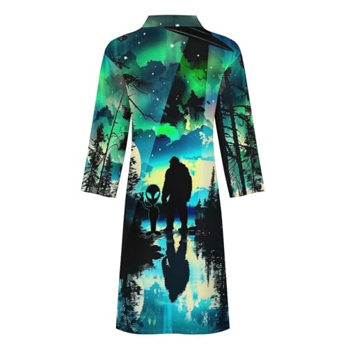 Moon Funny Bigfoot Alien Bathrobe Spa Robe Unisex Robes Sleepwear Loungewear Lightweight 3