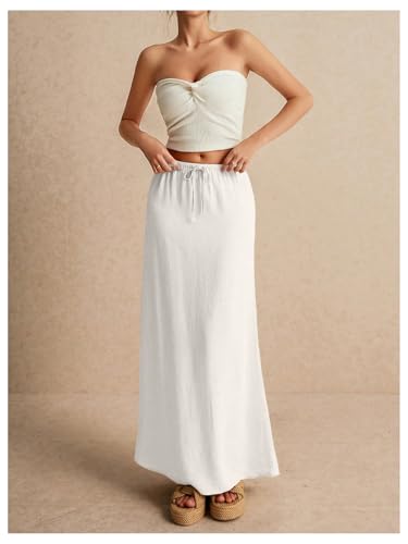 More information about SOLY HUX Women's Summer Maxi Skirt Drawstring Low Waist A Line Casual Skirts