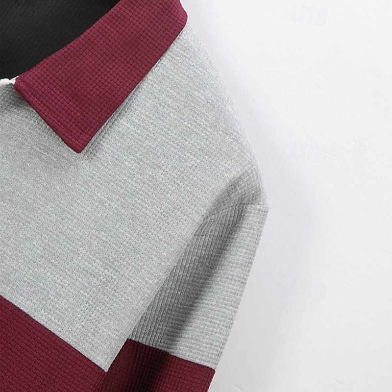More information about Men's Waffle Jacket Casual Jacket Vacation Daily Breathable Pocket Splice Spring Fall Color Block Fashion Classic Lapel Regular Wine Dark Green Brown Gray Jacket