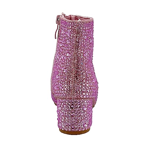 ABSOLEX Girle's Rhinestone Round Toe Block Chunky Low Heel Ankle Booties 6