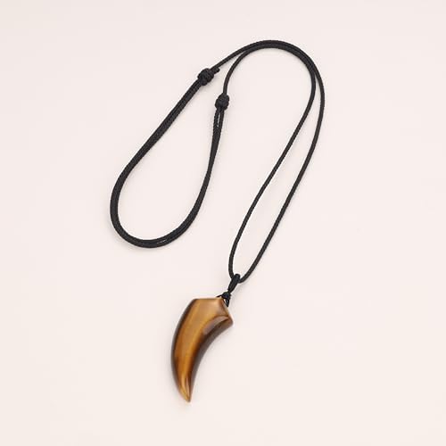 • This crystal necklace features 1.8"*0.8"*0.3"(4.7*2*0.8cm) Tiger Eye Stone wolf tooth pendant, which is in simple design