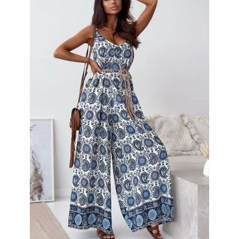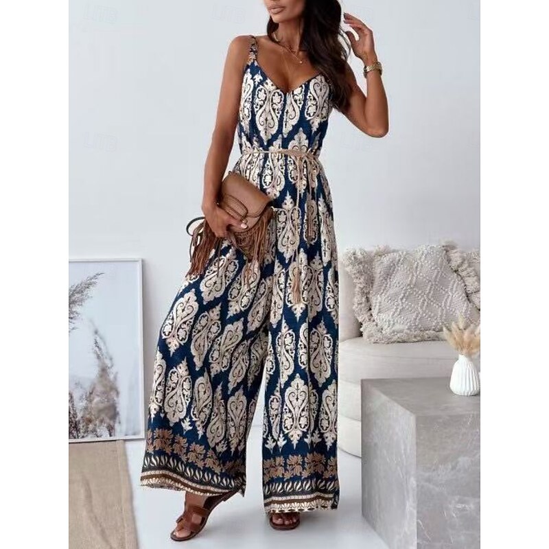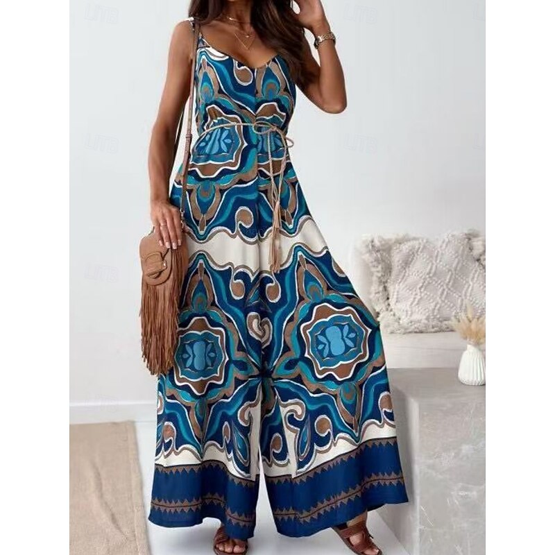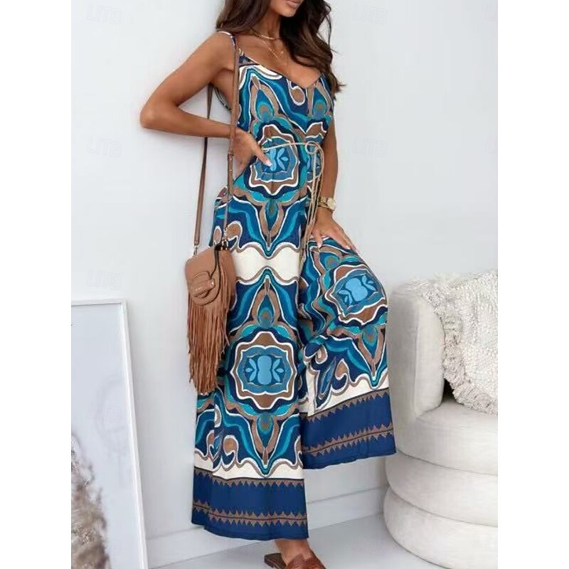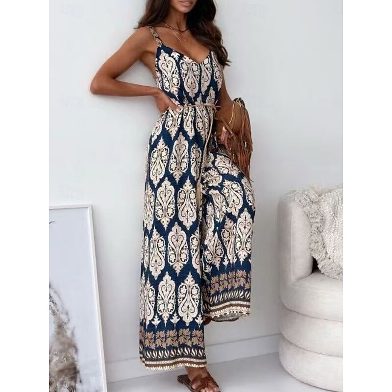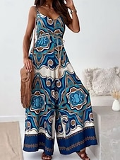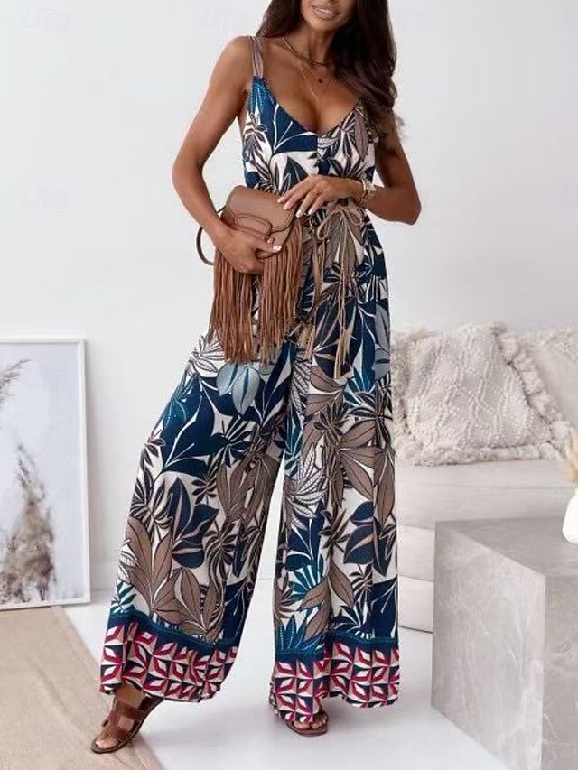 More information about Women's Normal Jumpsuit Active Graphic Sleeveless Wide Leg V Neck High Waist Vacation Daily Regular Fit Navy Blue Blue Apricot Summer