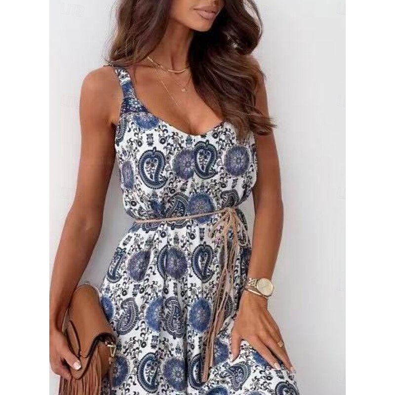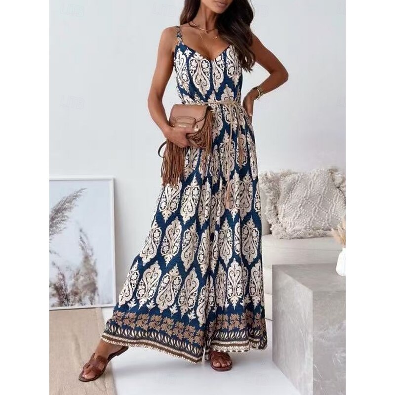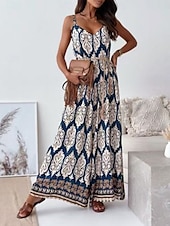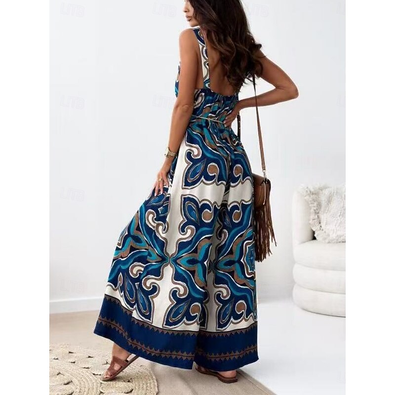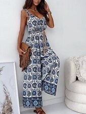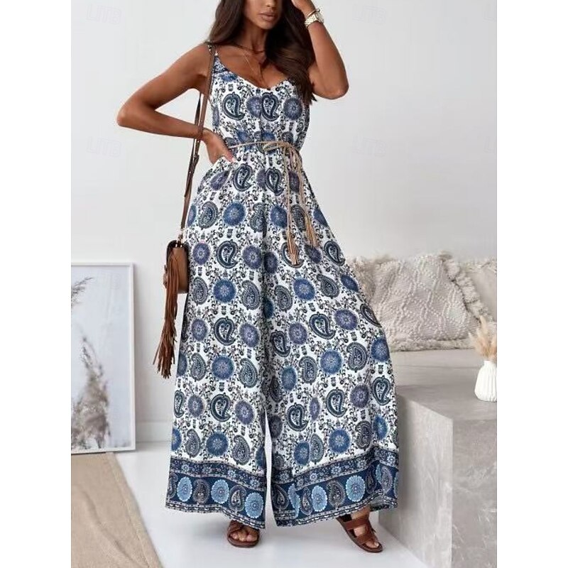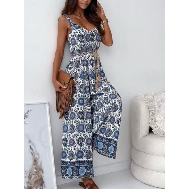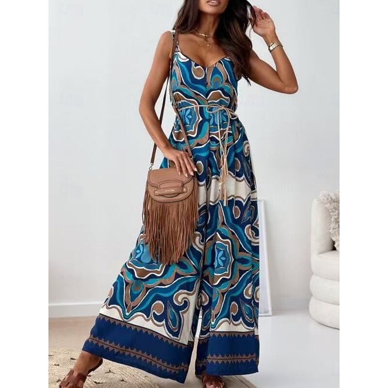 More information about Women's Normal Jumpsuit Active Graphic Sleeveless Wide Leg V Neck High Waist Vacation Daily Regular Fit Navy Blue Blue Apricot Summer