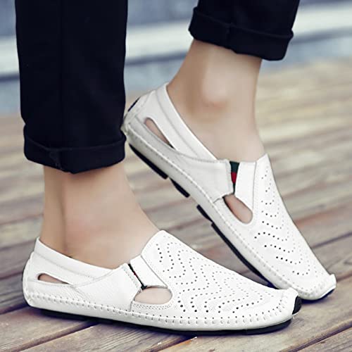 Men's Leather Loafers Cutout Breathe Hand-Stitching Slip on Lightweight Comfy Soft-sole Driving Walking Casual Sandals 6
