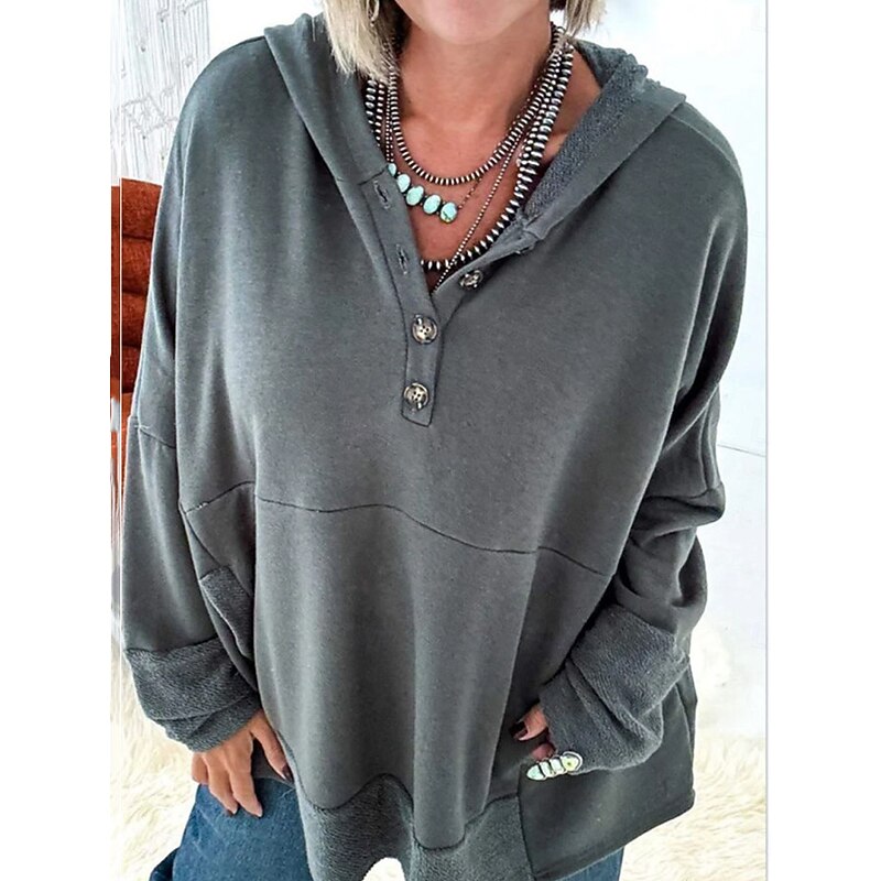 Highlights [Fabric & Fit] : Crafted from a soft and breathable polyester blend, this women's hoodie offers micro-elasticity for a comfortable and relaxed fit. The long sleeves and regular fit make it suitable for layering in fall and winter, ensuring warmth without sacrificing style. [Design Highlights] : Featuring a traditional hoodie design with added button accents at the neckline, this piece incorporates functional pockets for convenience and ribbed cuffs and hem for a snug and cozy fit. The plain pattern allows for versatile styling, making it an essential addition to your casual wardrobe. [Occasions] : Ideal for daily wear and street style, this hoodie effortlessly combines comfort and fashion. Its versatile design pairs well with jeans or leggings, making it perfect for running errands, casual outings, or relaxed weekends at home. [Size Range] : Available in sizes S, M, L, XL, and 2XL, this hoodie caters to a wide range of body types, offering a fit that suits various preferences for comfort and style. Perfect for everyday use. supreme materials and excellent craftsmanship ensure long-lasting durability.