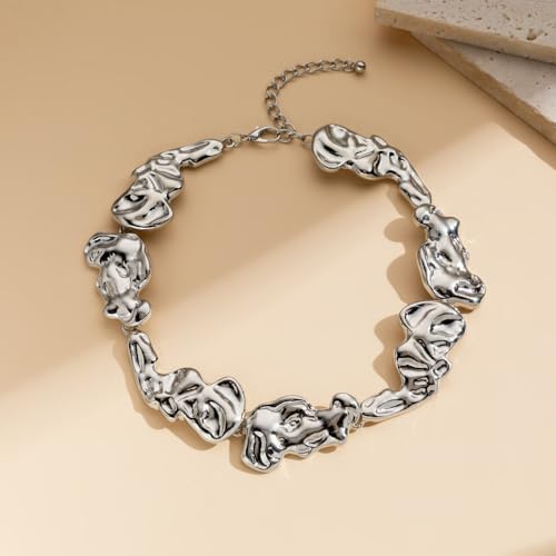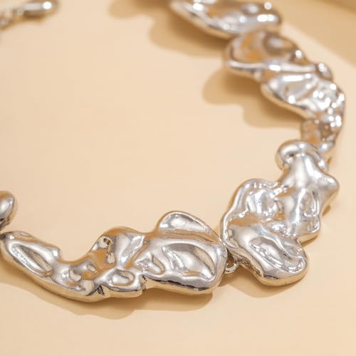 HOT ! Chunky Gold Statement Choker Necklace for Women Irregular Pleated Lava Necklace Minimalistic Melting Liquid Necklace Trendy Birthday Jewelry Presents