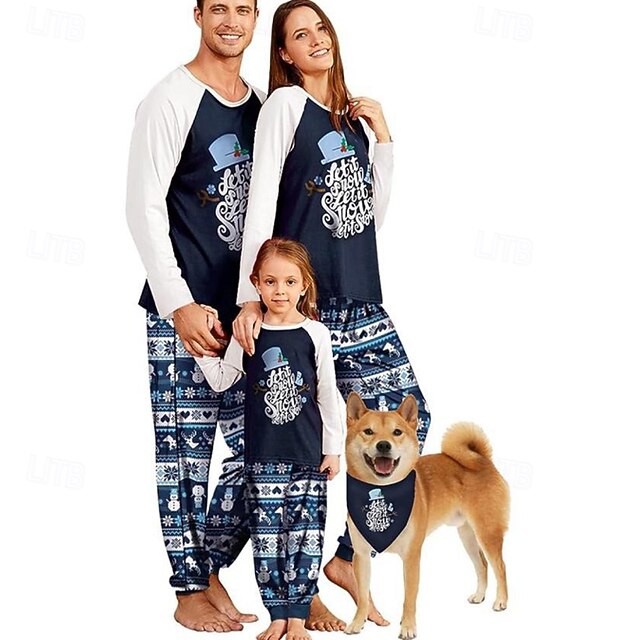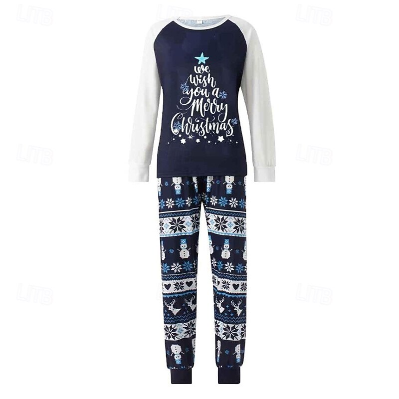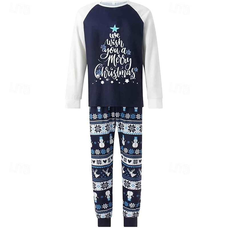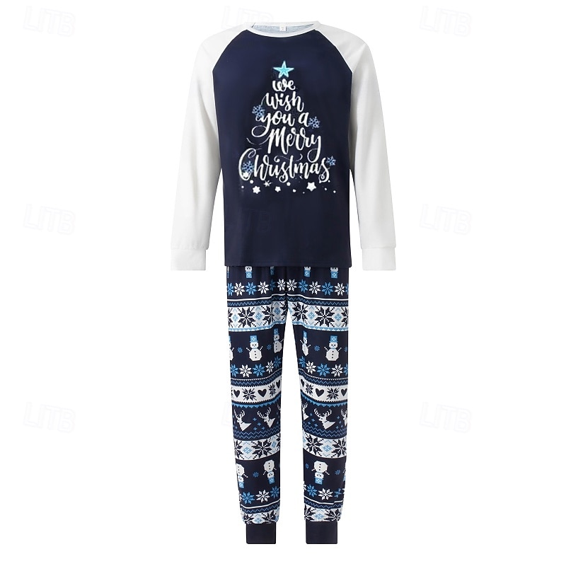 More information about Family Pajamas Christmas Pattern Home Print Navy Blue Long Sleeve Active Matching Outfits