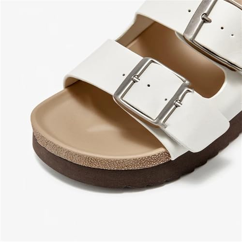 Women's Genuine Leather Slippers - Metal Buckle Double Strap Summer Beach Flats 5