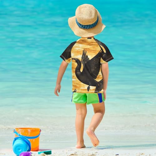 Boys Short Sleeve T-Shirts Cormorant Bird Yellow Rashguard Kids Swim Shirts Sun UPF 50+ 2