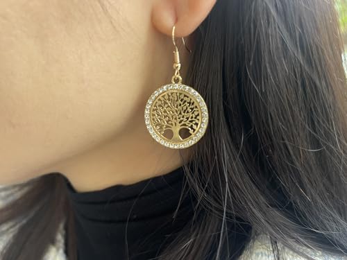 More information about Gold Silver Plated Tree of Life Drop Earrings For Women Korean Fashion Earrings Trend Jewelry Best Friend Gift (KC Gold)