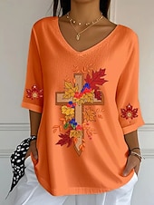 More information about Women's Blouse Graphic Daily Casual 3/4 Length Sleeve V Neck Regular Tops Daily Holiday Print Orange Summer Spring Fall