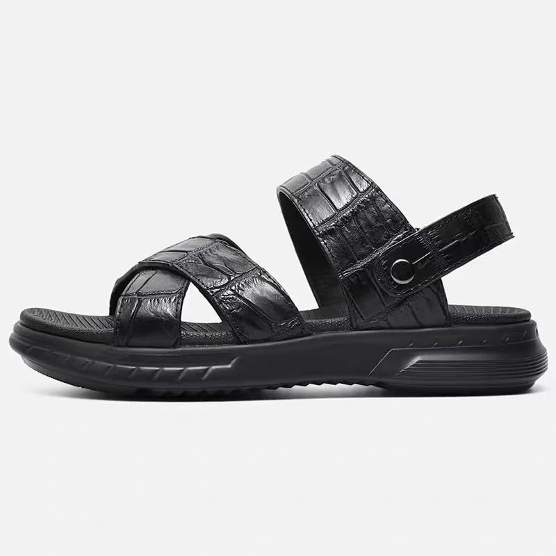 Authentic Exotic Crocodile Skin Classic Solid Black Two-way Men's Casual Sandals Genuine Real Alligator Leather Male Slippers 5