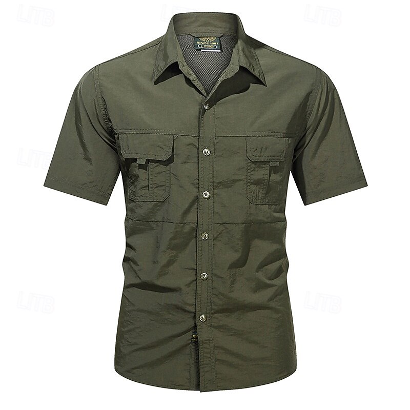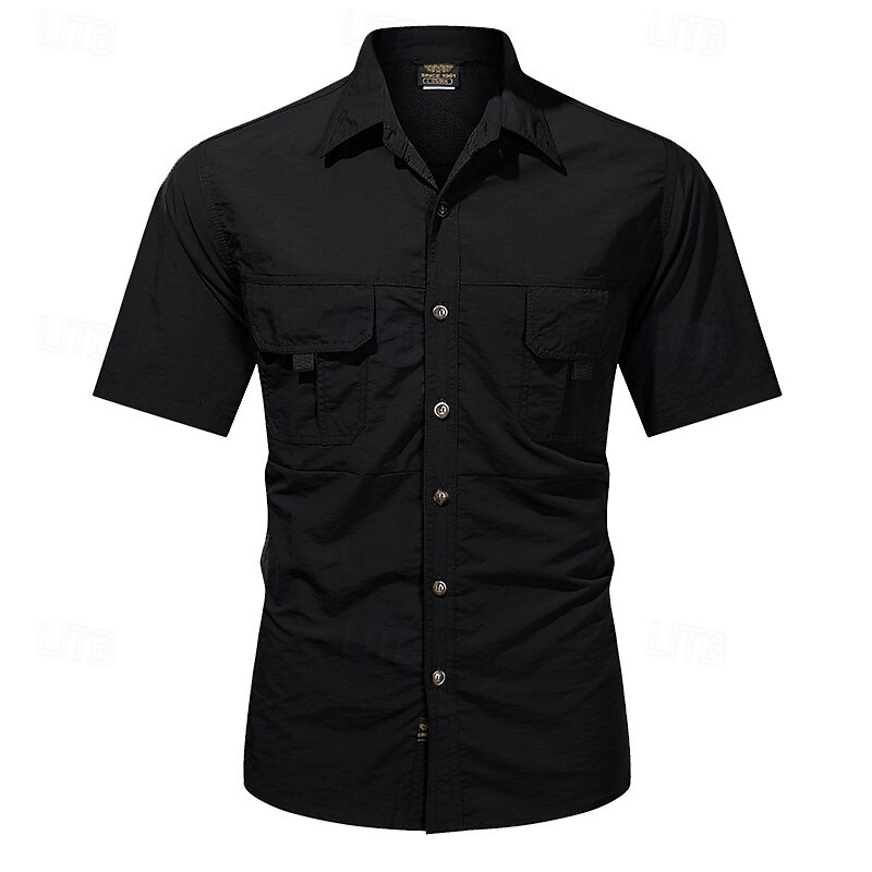 More information about Men's Shirt Summer Shirt Casual Shirt Button Up Shirt Cargo Shirt Black khaki Dark Grey Army Green Short Sleeve Plain Shirt Collar Vacation Hawaiian Pocket Clothing Apparel 100% Cotton Fashion Casual