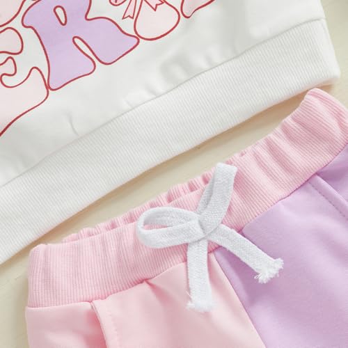 SAYOO In My Birthday Era Outfit Toddler Letter Birthday Girl Sweatshirt Pullover Contrast Color Jogger Pants Fall Clothes 4