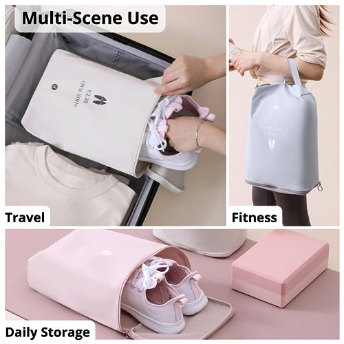 tianzong 2 Pack Shoe Bags for Travel, Water-resistant Shoe Storage Organizer with Zipper for Men and Women (Pink, T400-Beta) 4