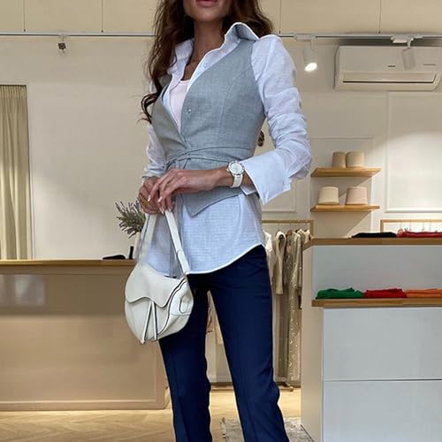 Deep V-neck Sleeveless Tops Solid Color Tank Top Women's Vest for 4
