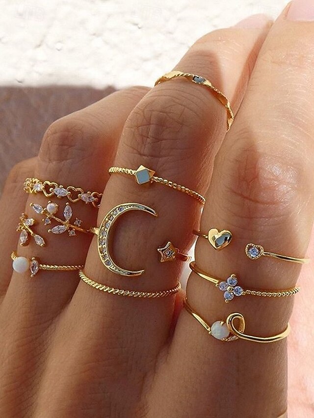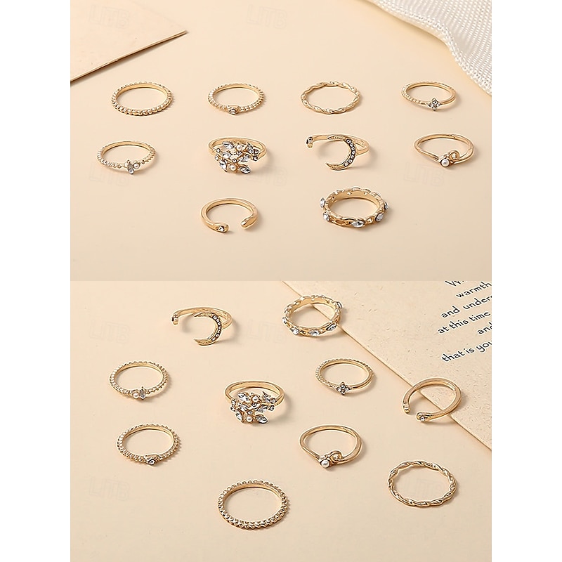 $9.99 - Gold-Plated Stacking Rings Set for Women – Rhinestone and Pearl-Embellished Adjustable Rings, Trendy Boho Style for Casual and Formal Occasions 2025. Shop for cheap Women's Rings online? Buy at lightinthebox.com on sale today!