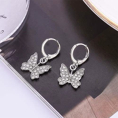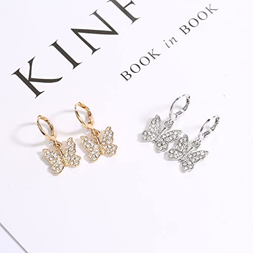 Rhinestone Animal Charm Tiny Cute Butterfly Drop Gold Hoop Earrings Hanging Women Huggie Hoop Earrings Summer Jewelry 7