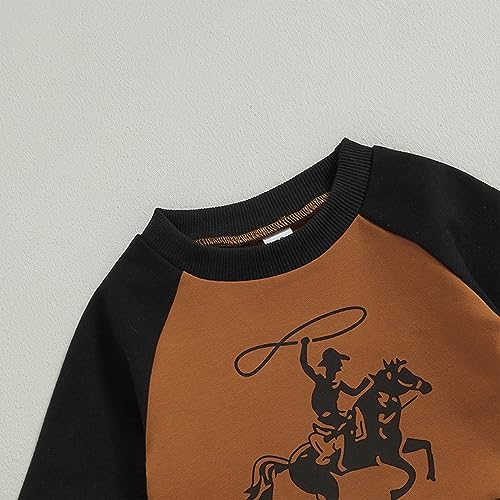 Toddler Kids Boys Long Sleeve Cowboy Letter Printing Color Block Crewneck Sweater Tops Lace Up Pants Outfits 6