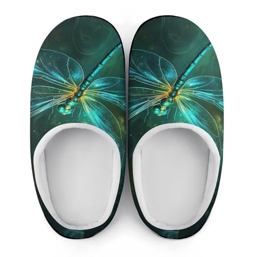 Green Dragonfly Women's Cotton Slippers Indoor Outdoor Slip-on Warm House Shoes with Anti-Skid Rubber Sole 1
