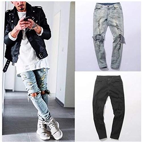 HOT ! Andongnywell Mens Destroyed Ripped Straight Fit Jeans Distressed Slim Fit Biker Stretch Denim Pants Trousers