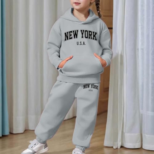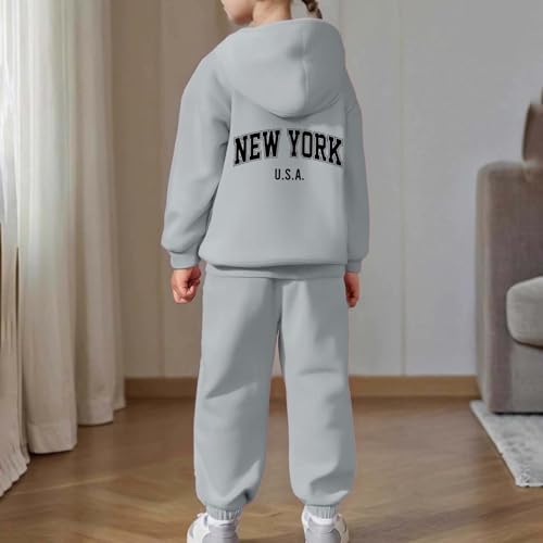 HOT ! Girls Sweatsuit Set New York Letter Print Pullover Hoodie Sweatshirt and Jogger Sweatpants 2 Piece Fall Outfit 2-13Years