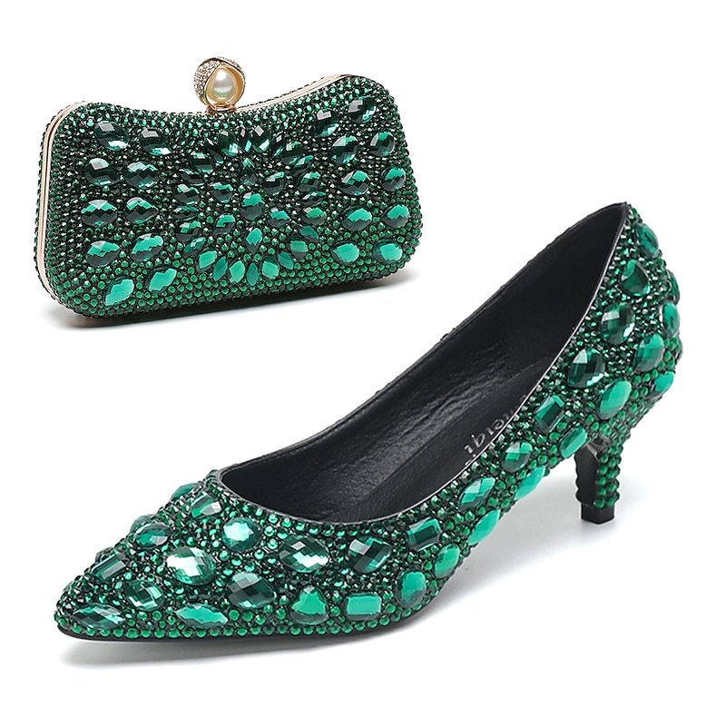: Ideal for weddings, parties, and other special events where making a statement with sparkle and sophistication is desired. The shoes and clutch set offers a complete look that exudes charm and grace, perfect for brides, bridesmaids, or anyone looking to add a touch of glamour to their ensemble.